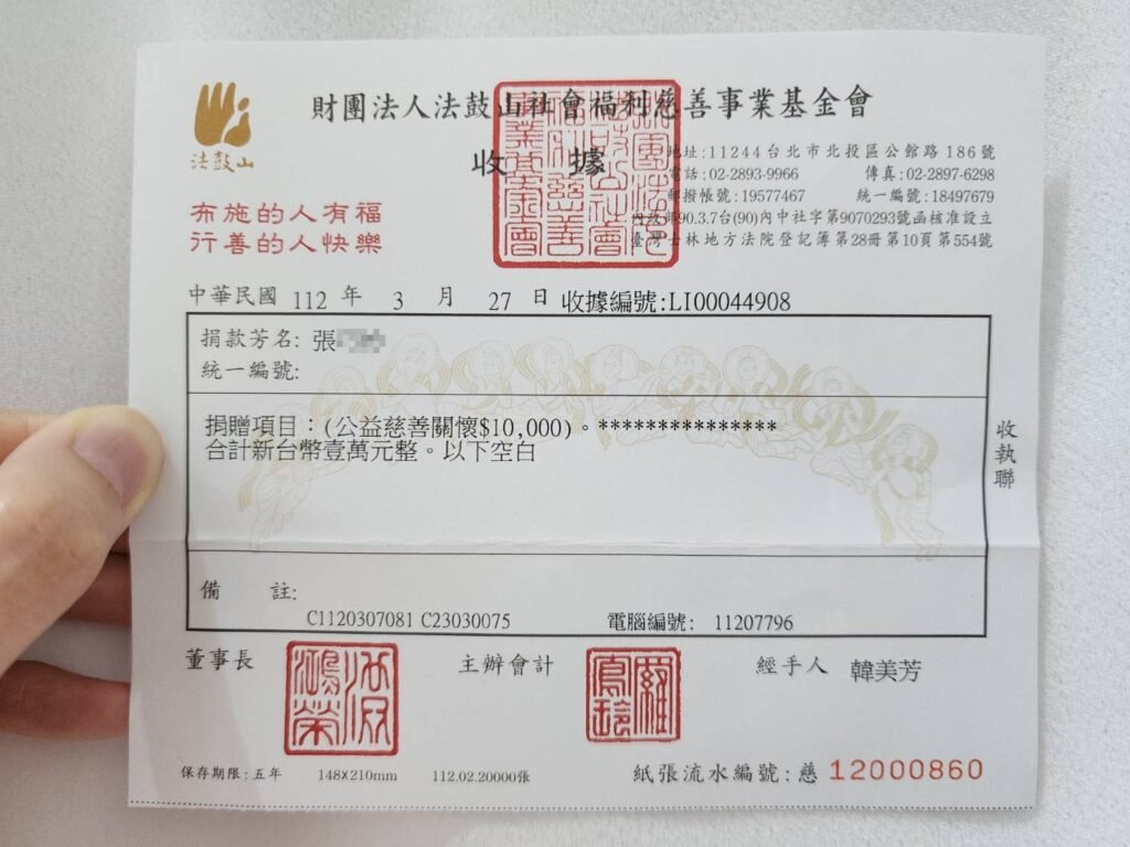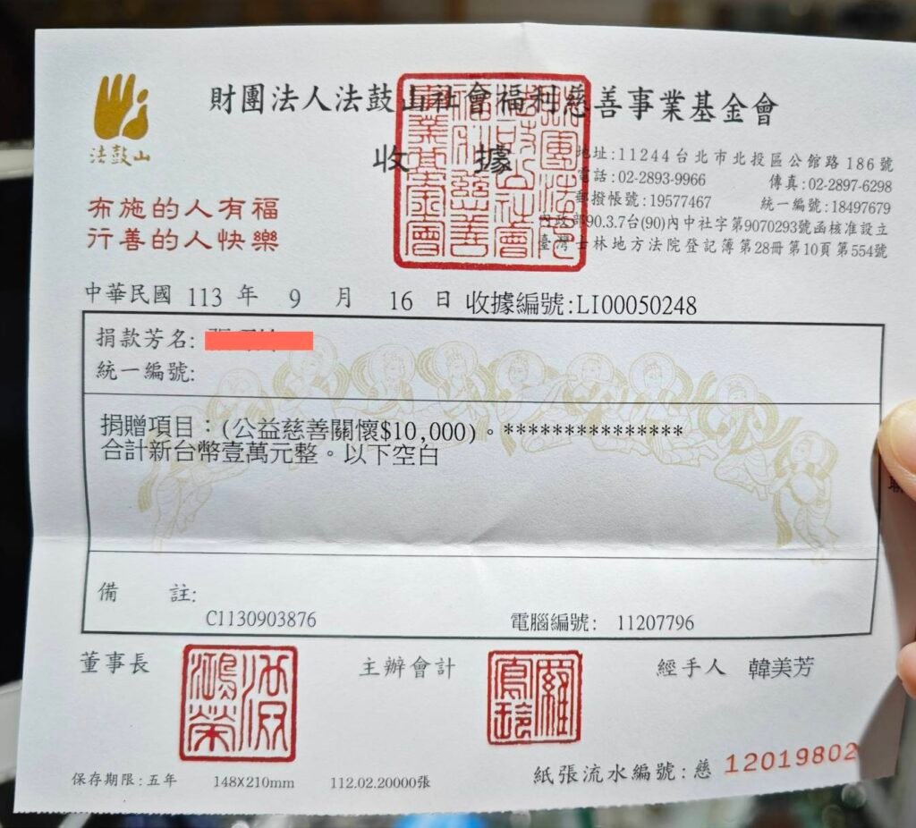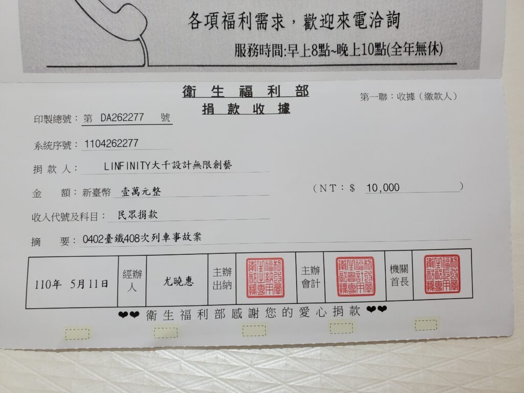 <在行善的路上,有您同行-公益捐款收據>
