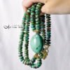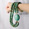 1.圖上綠松石滾石長約38mm、寬約32mm、厚約20mm,綠松石扁片寬約10mm,為二層鍊身設計,項鍊最短(脖圍)約48cm、最長約52cm。