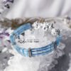 藍拓帕石磨製片狀,色澤清澈澄淨,藍彩舒心流轉,隨光閃耀。