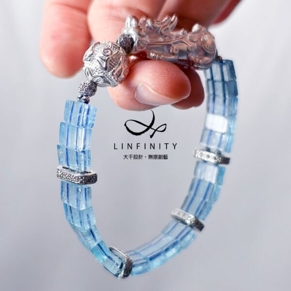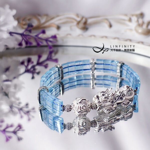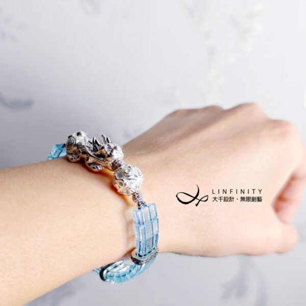 嚴選頂級藍拓帕石,佐招財神獸 – 貔貅設計。