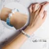 1.圖上藍拓帕石寬約9.8mm,純銀貔貅長約27mm、寬約12.7mm、高約11.2mm,六字真言球約11.5mm,整體手圍約15.5cm。