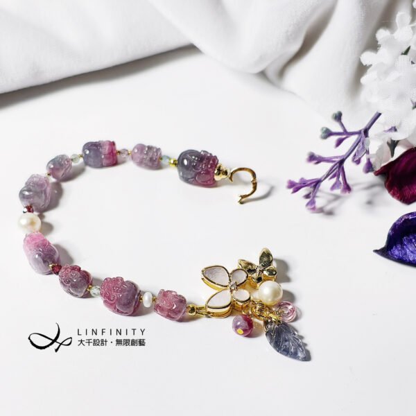設計師嚴選碧璽家族中稀有之藍西瓜(藍紅共生)碧璽、紫碧璽設計,展現碧璽色彩層次中最迷人且難得的篇章。