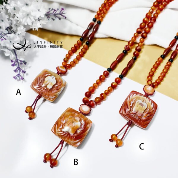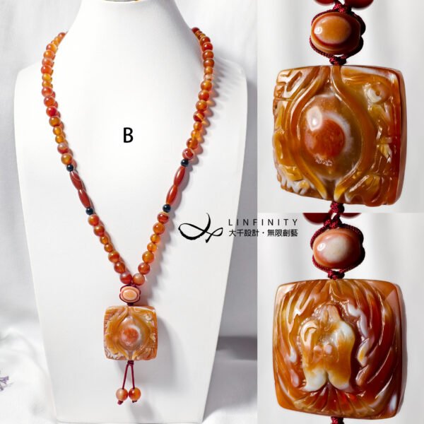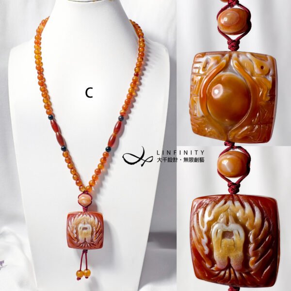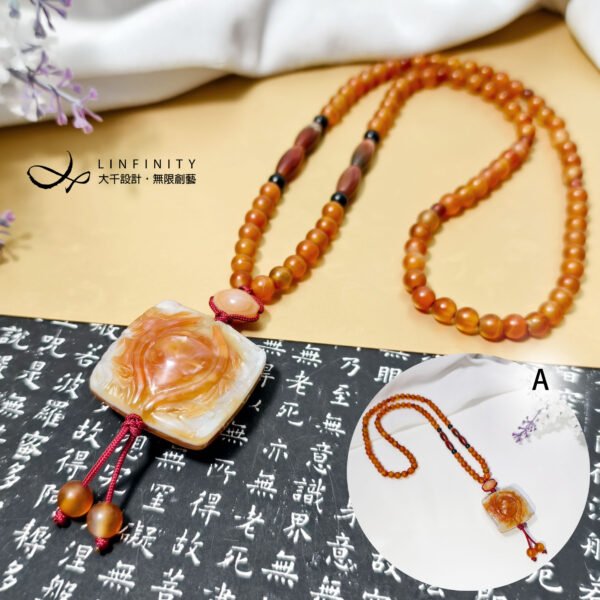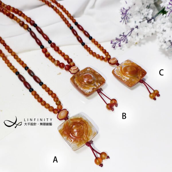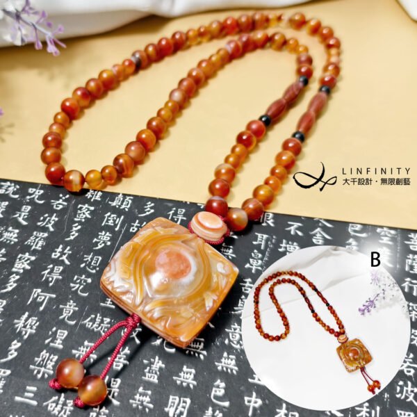 1.圖上鍊身(不含墜)總長約 60cm,主珠瑪瑙方形墜牌尺寸如下: