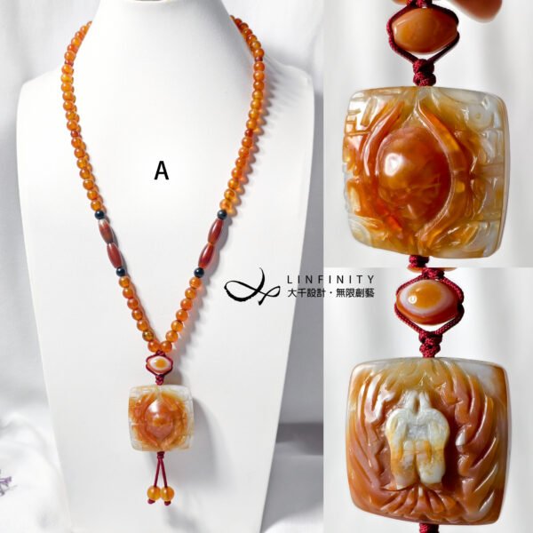 精選天然紅瑪瑙,磨製方形墜牌,器形端正穩重,寓意根基穩固、四方穩固、法界平衡、財庫定錨
