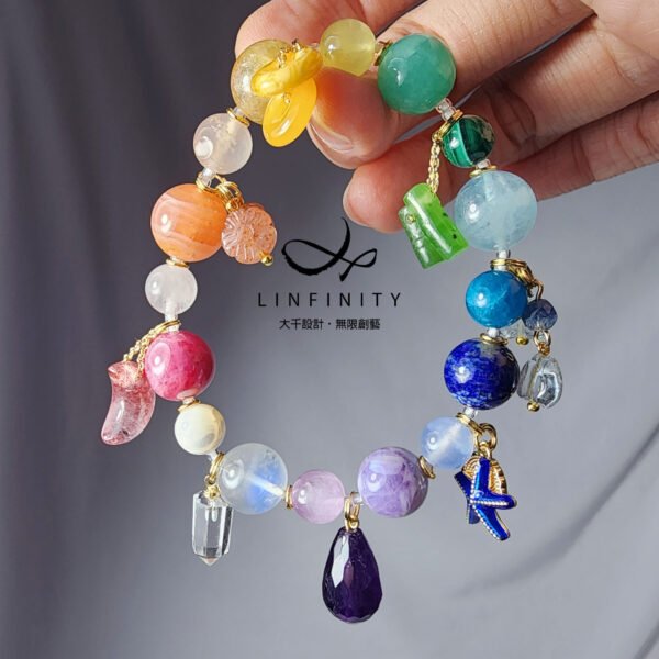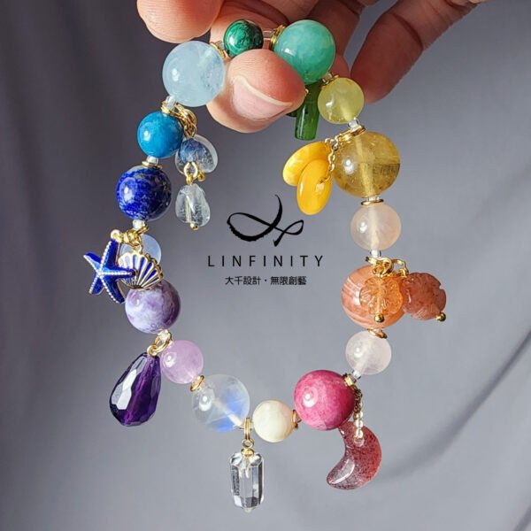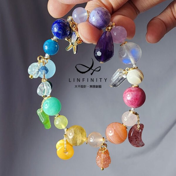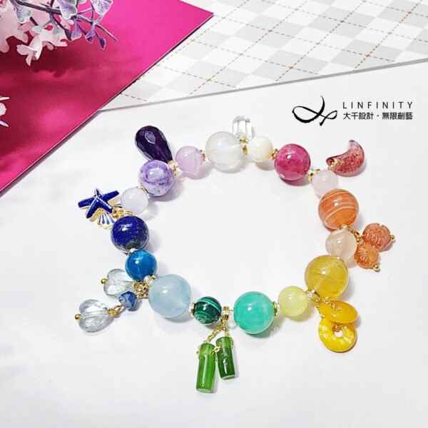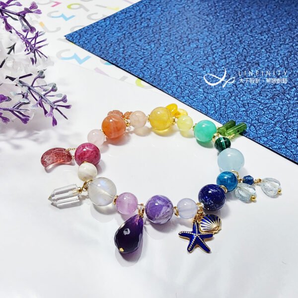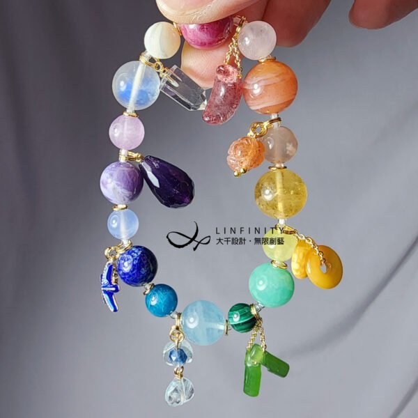 嚴選高質量多種天然寶石,依彩虹(五行、七脈輪)色彩排列設計: