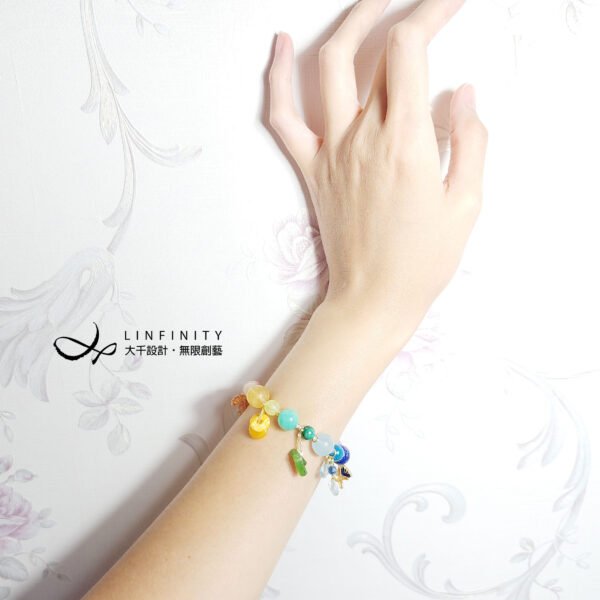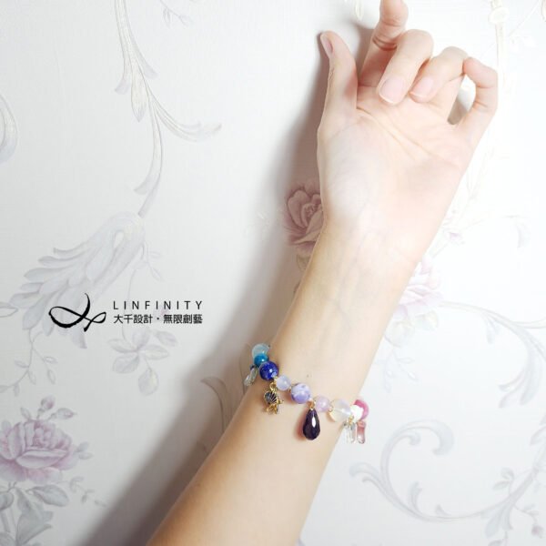 材質:薔薇輝石、玫瑰石、草莓晶、粉晶、瑪瑙、金太陽石、黃水晶、琥珀、金葡萄石、天河石、碧玉、孔雀石、海藍寶、拓帕石、藍晶石、藍磷灰石、青金石、琺瑯、藍紋瑪瑙、紫玉晶、紫水晶、紫鋰輝、藍月光、白水晶、硨磲、925銀、18K金