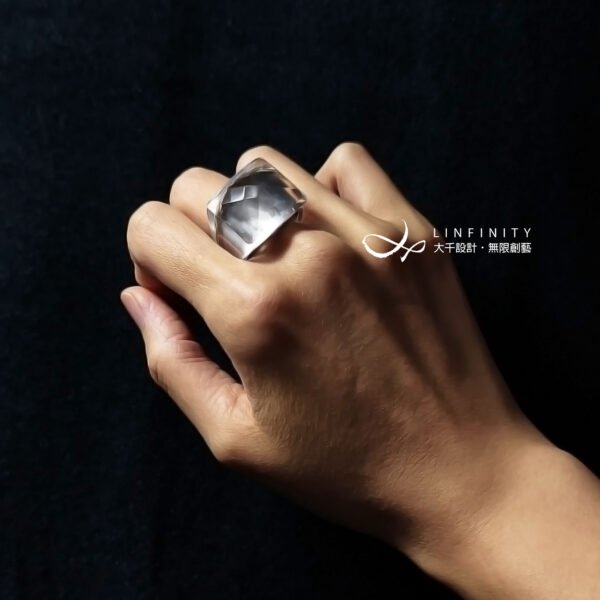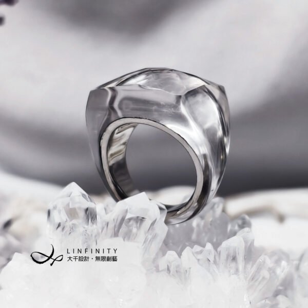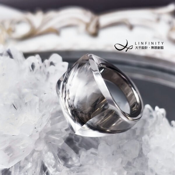 最高程度展現水晶之王的力量、堅毅、高貴品格特質,磨製大器閃耀鑽切戒面,戒內圍精工鑲嵌925銀。