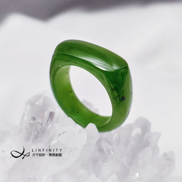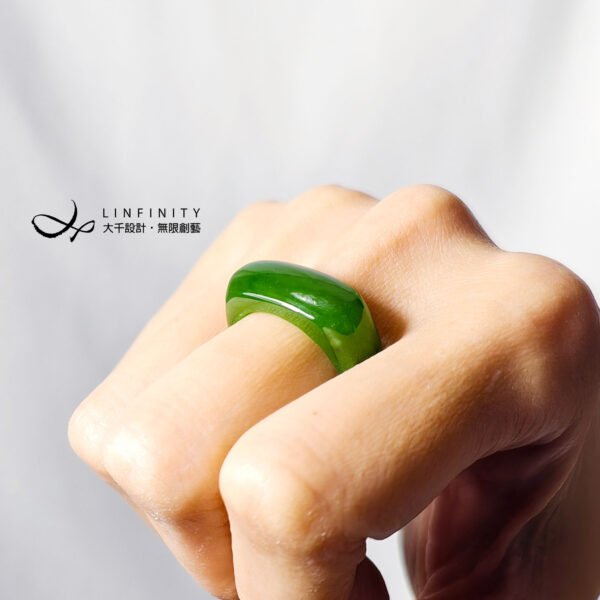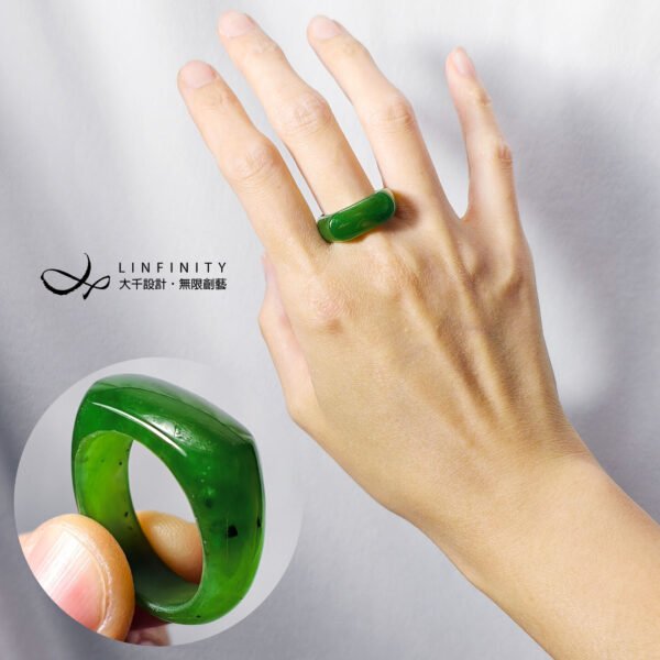 嚴選天然頂級碧玉,晶體碧綠濃豔,精工磨製馬鞍戒型,象徵事業成功、飛黃騰達,是雍容富貴,氣宇非凡,千年一遇,值得收藏的臻品。