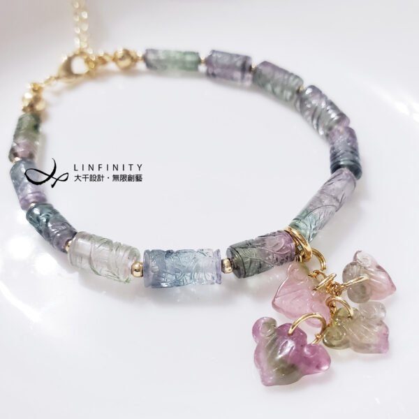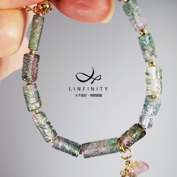 嚴選頂級西瓜碧璽(漸層、複色碧璽),精工巧雕吉祥文飾,顆顆淨透無瑕、色彩勻淨、火彩閃耀,時尚亮麗、細緻優雅,點綴以4只西瓜如意,象徵事事如意、富貴吉祥。
