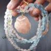 1.圖上摩根石玫瑰花高約31mm、厚約11.5mm,鍊身綠柱石隨型珠長約5.5-9mm,項鍊總長度(不含玫瑰花)約45cm。