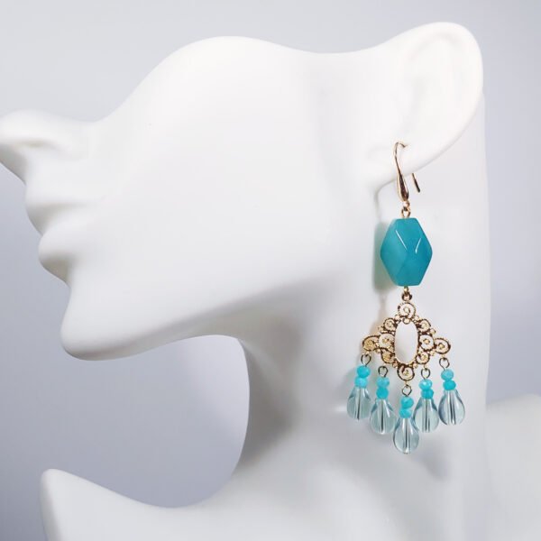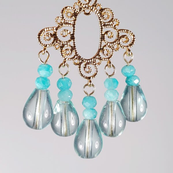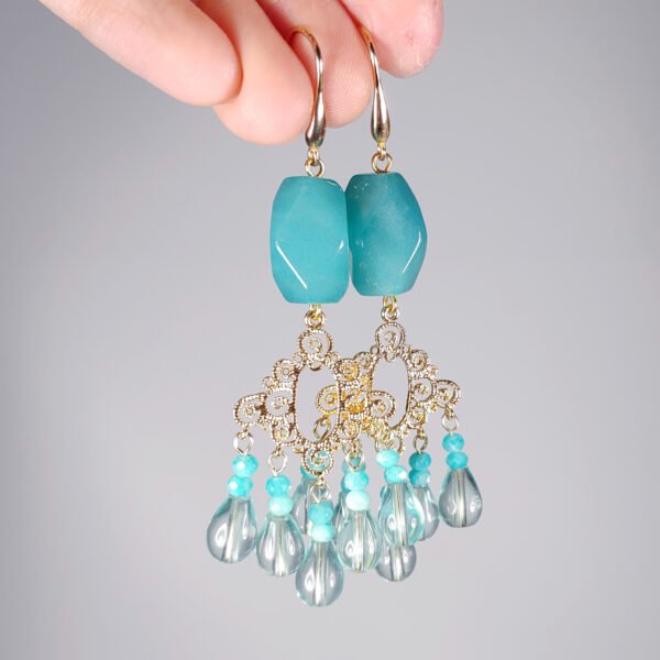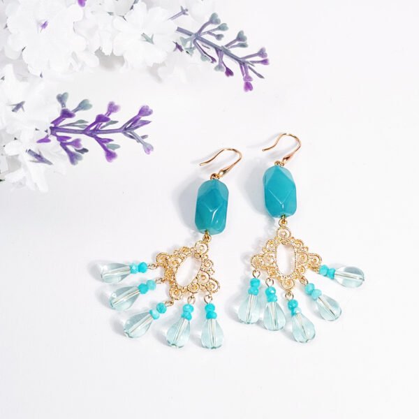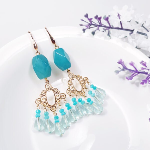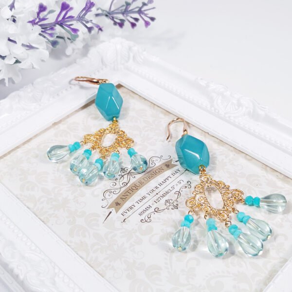 嚴選『幸運之石』-天河石,相佐『勇敢者之石』-海藍寶,滿滿的智慧藍色能量,流暢優雅的造型,不僅增強表達能力,一顰一笑間也充滿魅力。
