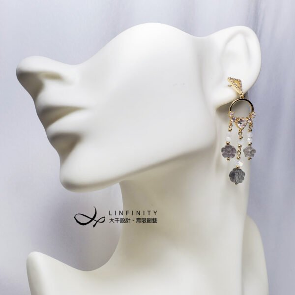尺寸:彩虹灰月光花朵寬約7.5mm、厚4mm,整體含三角形耳針總高約5.8cm,可改夾式,但三角形耳針造型可能改變,歡迎與設計師溝通。