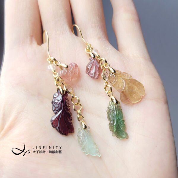 尺寸:本款為不對稱設計,金魚約長15-20mm,總高含耳鈎約6cm,可改夾式。