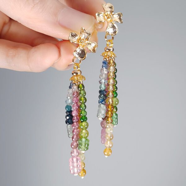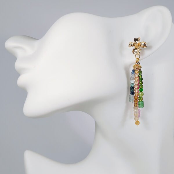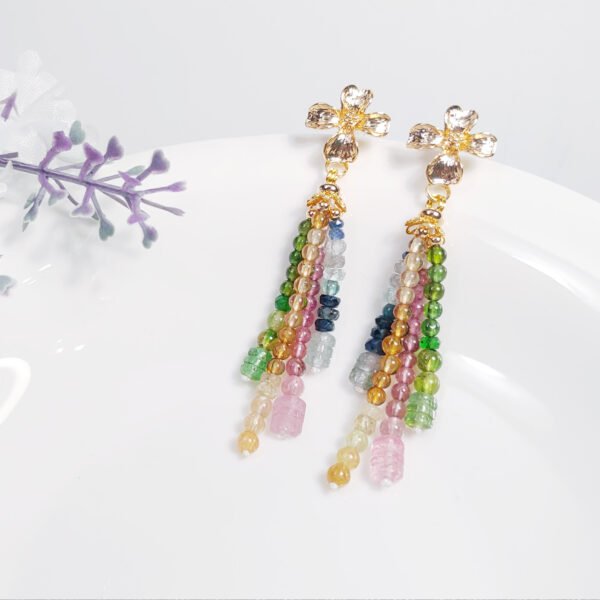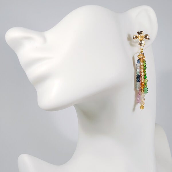 嚴選頂級彩色碧璽,精工編製優雅流蘇造型,顆顆淨透無瑕、色彩勻淨、火彩閃耀,細膩別緻的點綴女性耳際。