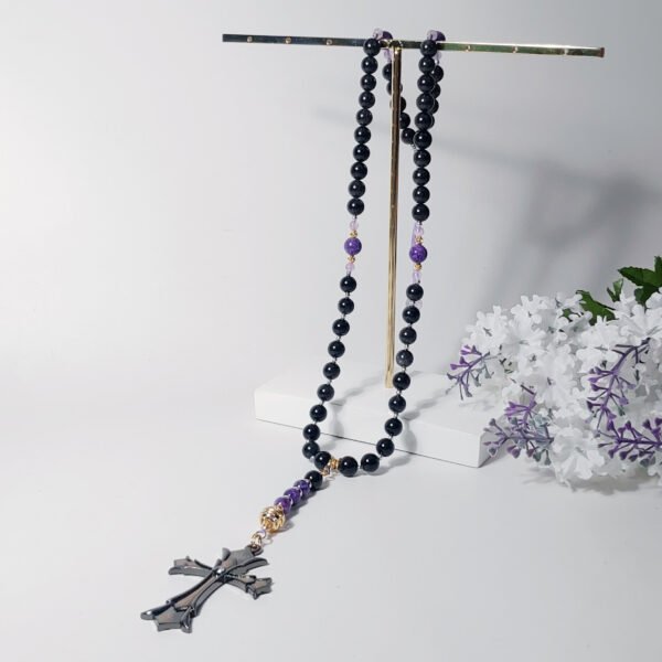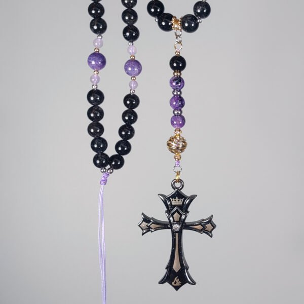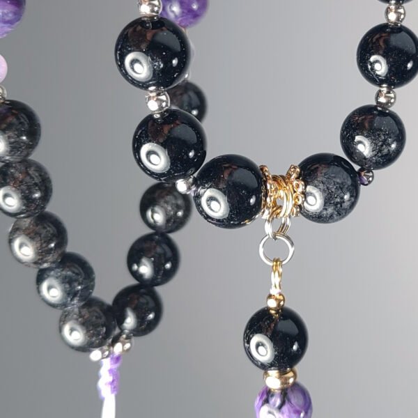 嚴選滿佈黑碧璽之黑髮晶,相佐帝王氣息極強之紫龍晶,成就這氣場極強、風格獨具之逸品。