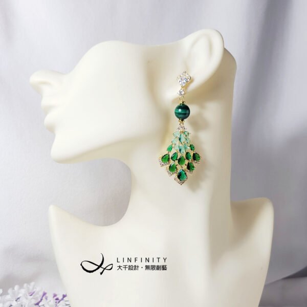 尺寸:孔雀石約10mm,總體含鑽飾耳針總高約7.5cm,可改夾式,但鑽飾耳針必須改變,並寶石重量重,請小心避免滑落喔^^。