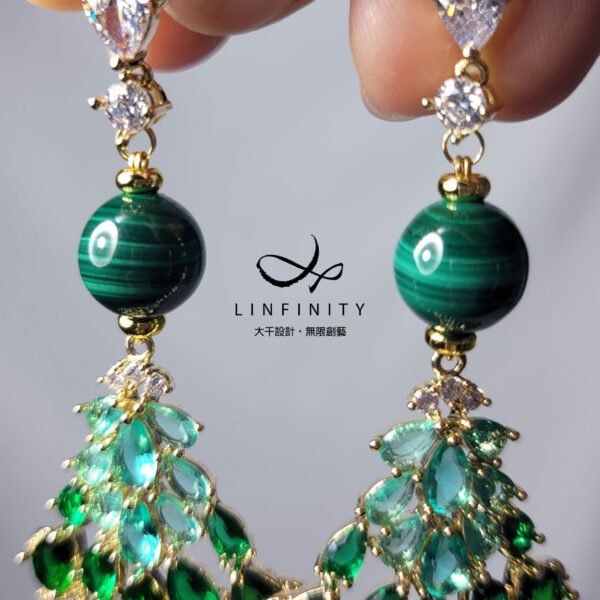嚴選豔綠之天然孔雀石,相佐萊茵石設計。