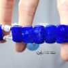 遴選青金石切記,以藍、白(方解石)、金(黃鐵礦)自然分布者佳。並因青金石生成於地表,表面孔隙多,不宜長期遇水,建議常以礦物油養之。