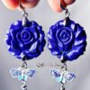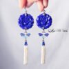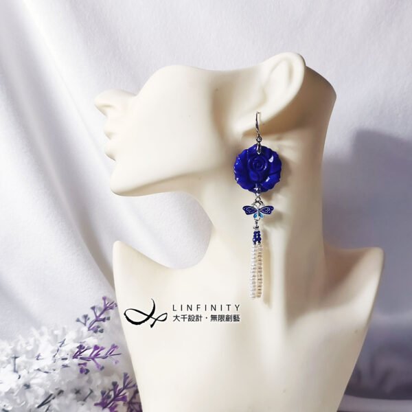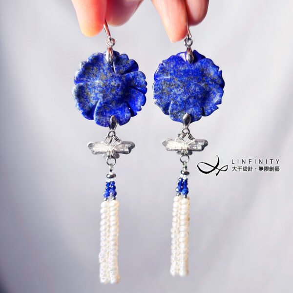 尺寸:圖中青金石玫瑰直徑28mm、厚5mm,珍珠流蘇高約36mm,整體含耳鈎約12cm,因寶石重量重,不建議改夾式呦^^。