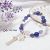 鍊身佐吉祥銀飾(十字金剛杵-智慧,蝴蝶-福氣,壽字-平安健康、花-富貴),與丹泉石色彩、尺寸和諧搭配、富韻律感。