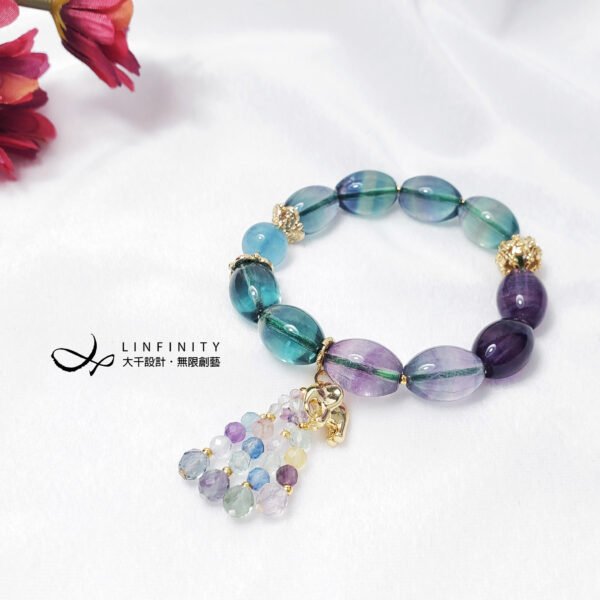 彩虹螢石 漸層 象 流蘇 隨意釦 智慧 財富 事業 手鍊 單品 禮物