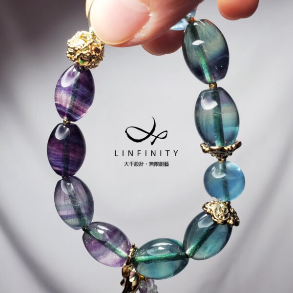 在天然寶石的領域,螢石屬於顏色最豐富的石頭,因為含有鐵、鎂、銅等離子,綠、紫、黃、藍、棕、橙、粉……螢石幾乎可以呈現任何顏色,宛如彩虹般美麗,故亦有「彩虹寶石」之美稱。