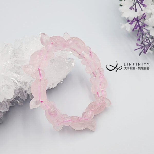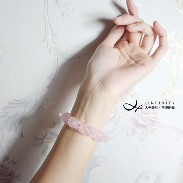 粉晶(Rose Quartz)亦稱作薔薇水晶、芙蓉晶,呈現六芒星光者為上品,相當稀有。