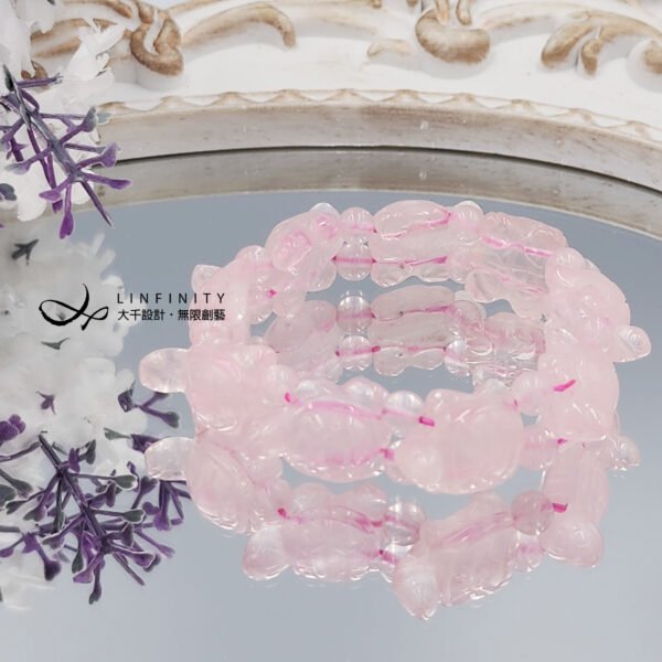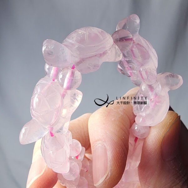 嚴選愛情之石-星光粉晶,精工雕琢神獸烏龜(招財、健康、吉祥),靈動可愛,憨態可掬。