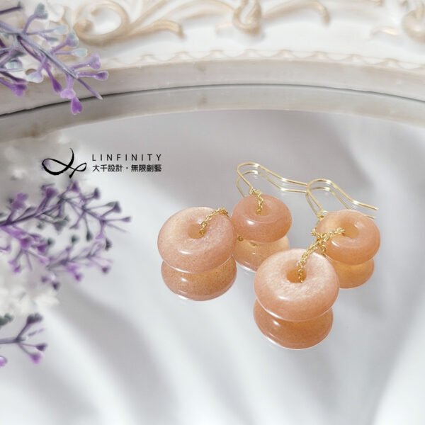 嚴選頂級橙月光石(太陽石)平安扣(古錢),以K金鍊編製,象徵一元復始、好事成雙、圓圓滿滿。