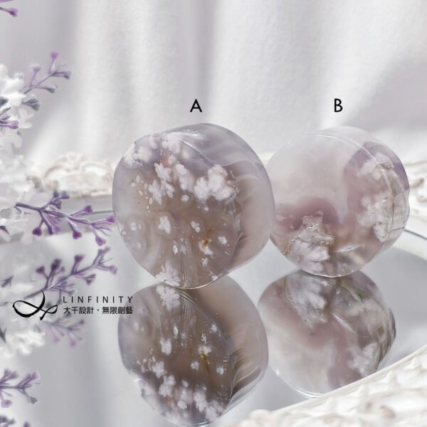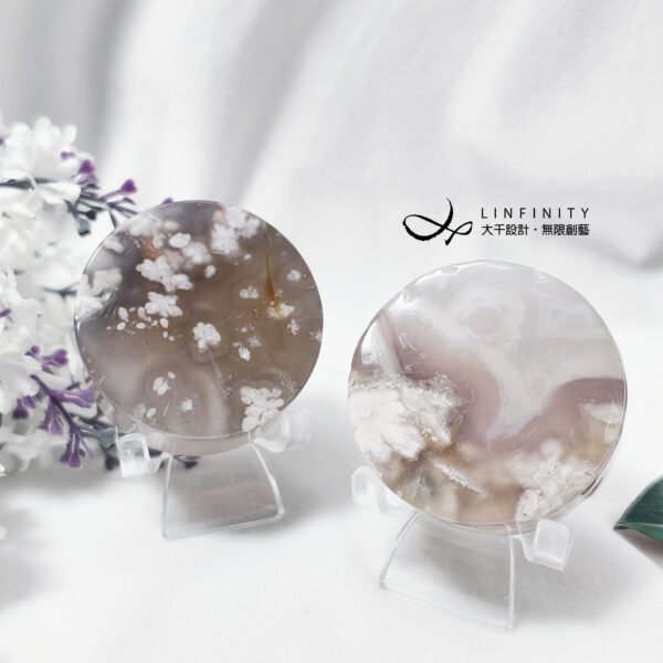 櫻花瑪瑙經過億萬年前岩漿穿過海底,經過歲月的變遷慢慢地沉澱凝結,形成宛若花朵之晶體,故名「櫻花瑪瑙」,並且形態各異、無法復刻,為大自然賜予、獨一無二的瑰寶。
