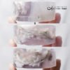 寶石藕紫冰潤,其上朵朵白櫻花紛飛,流淌著瑪瑙經典的冰粉色纏絲紋理,意境浪漫美麗,耐看、耐賞玩。