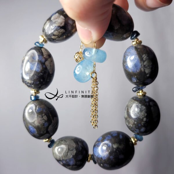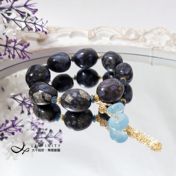 材質:天然鋰鈹石、海藍寶、藍碧璽、925銀、18K金