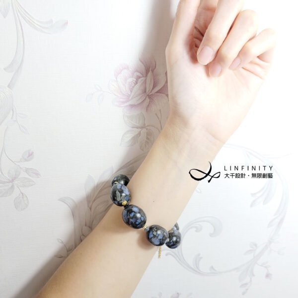 鋰鈹石為大器滾石,能見黑、白、藍交織獨特紋理,古典美麗。