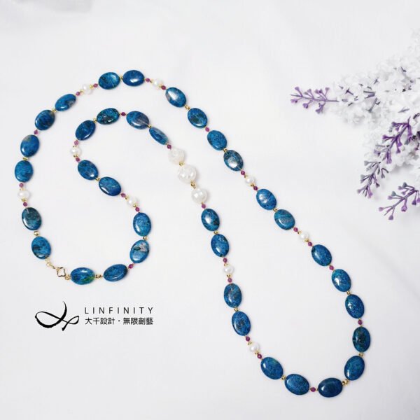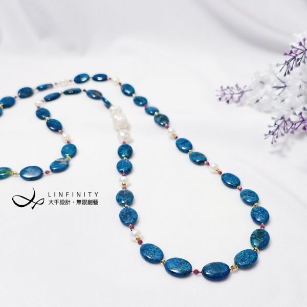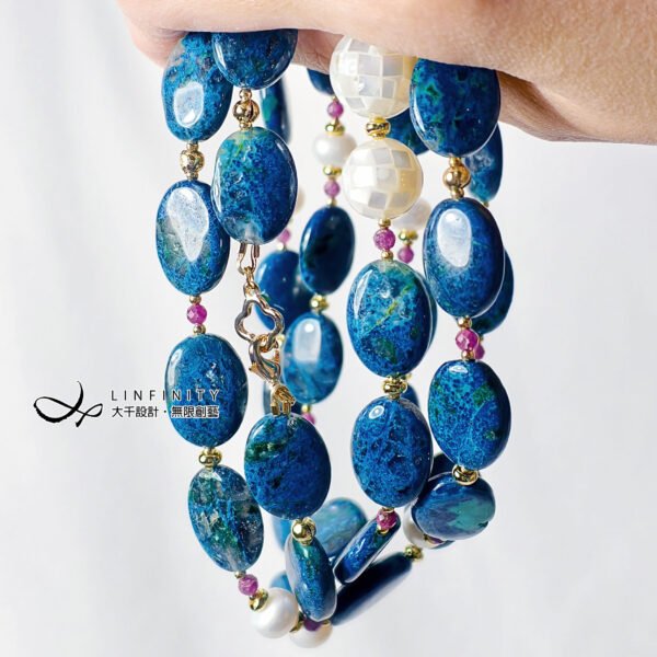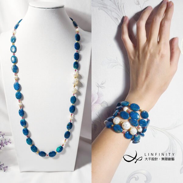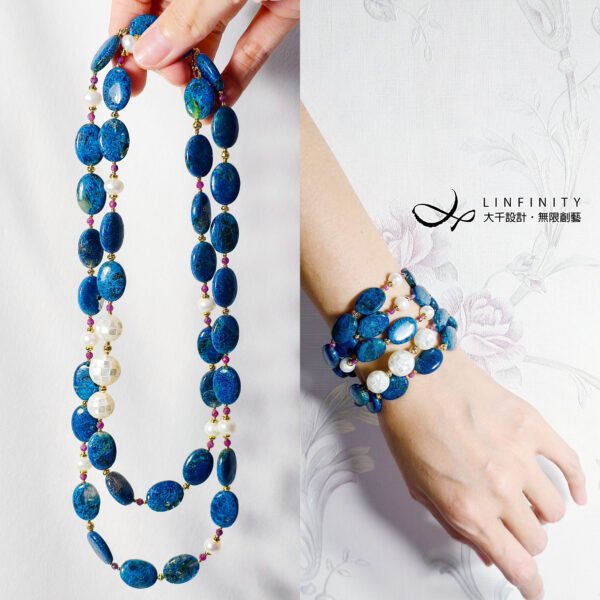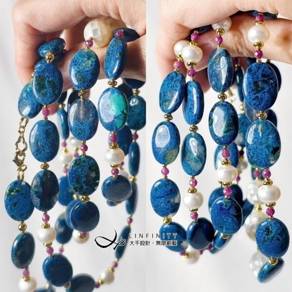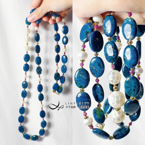 珍稀頂級藍銅礦 鳳凰松 紅寶石 珍珠 螺鈿 項鍊手鍊2用 單品 禮物