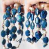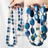 藍銅礦手工磨製稀有橢圓扁珠型,高瓷度,色彩呈現靛藍、蒼藍、碧藍等舒心藍色調,可見共生的絲絲細膩孔雀石綠、冰透玉化紋,每一枚藍銅礦宛如畫布,紀載大地母親孕育億萬年的紋理。
