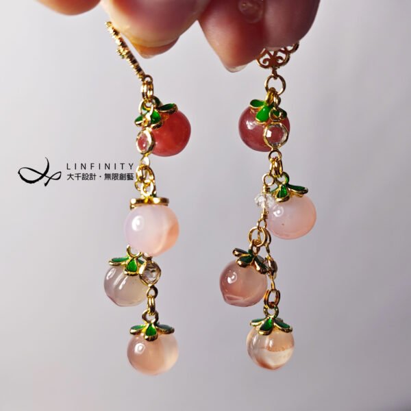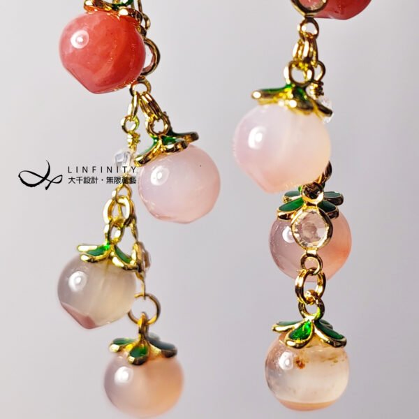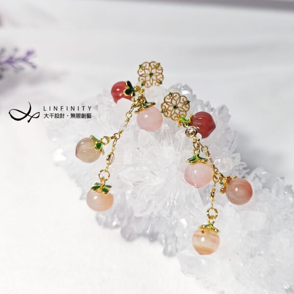 嚴選天然冰種瑪瑙(玉瓍),精工雕製桃型墜飾,寶石水光勻淨、冰透水潤、無斑點礦缺。