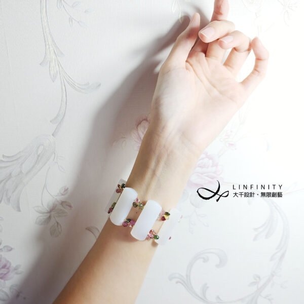 嚴選產量珍稀之白色蛋白石,佐彩虹寶石碧璽設計。