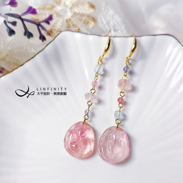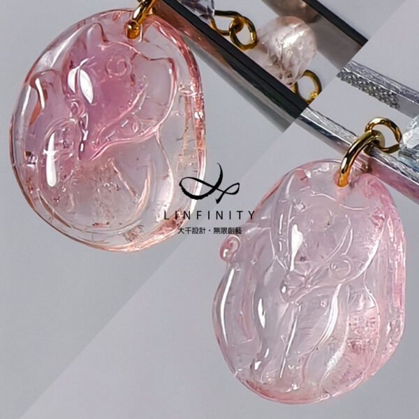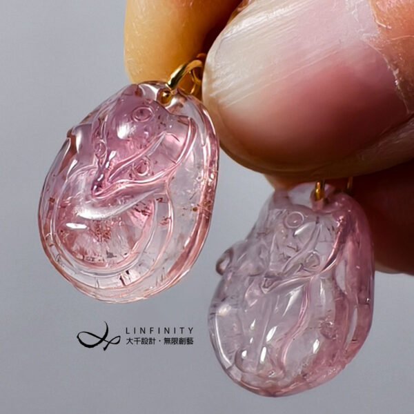 設計師嚴選粉碧璽,雕刻為狐仙(貴人緣、助事業),寶石色彩清雅、冰潤勻淨、火彩閃耀,品相頂級。