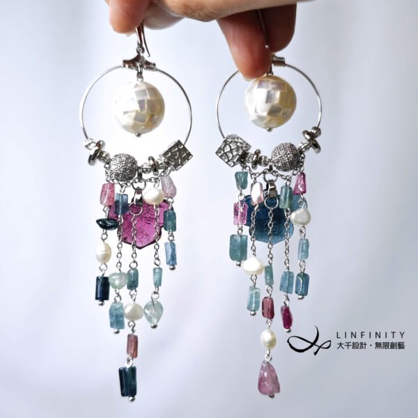 材質:天然碧璽、珍珠、螺鈿、18K金、925銀