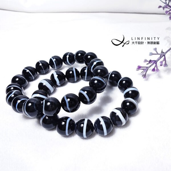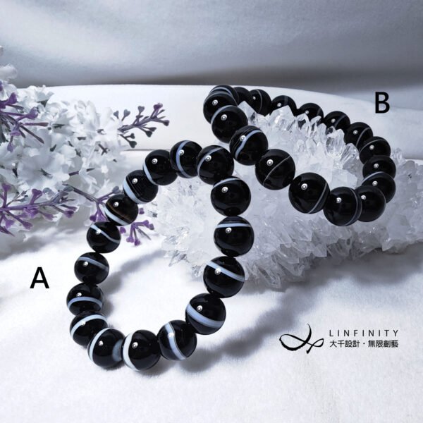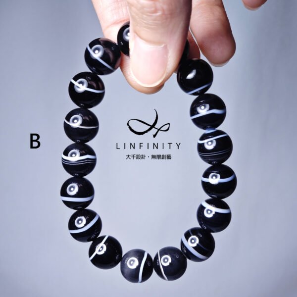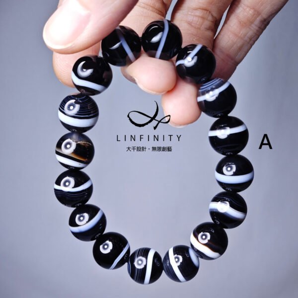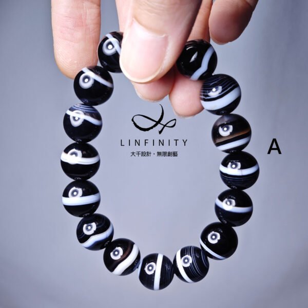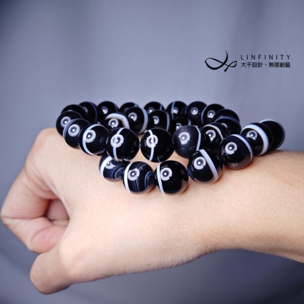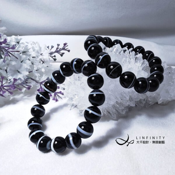 設計師嚴選稀有珍貴一線藥師珠(瑪瑙),寶石黑白紋理清晰,陰陽有序,合諧有魅力,為助事業、去負能量的黑色系寶石天花板,極其難得,深具收藏價值。