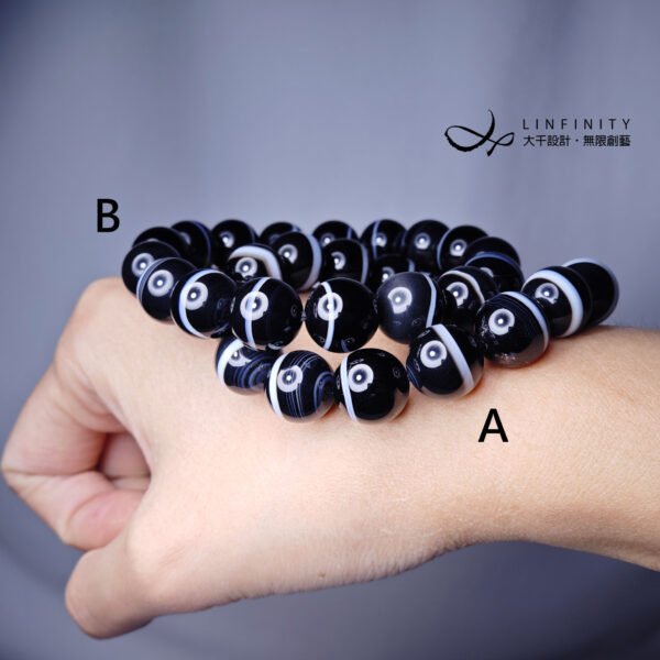 1.圖上藥師珠直徑約12mm,A款-白線條約1-3mm,手圍16cm,B款-白線條約1-2mm,手圍17.5cm。
