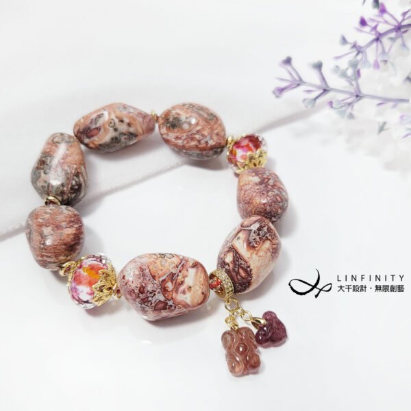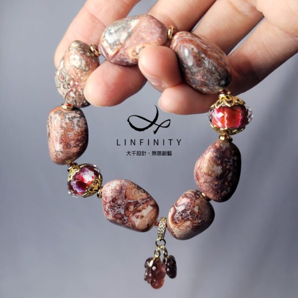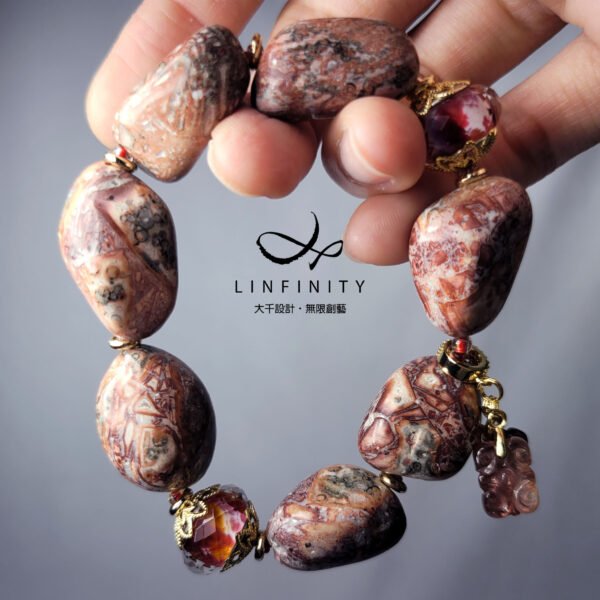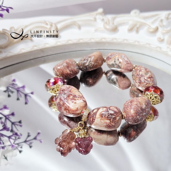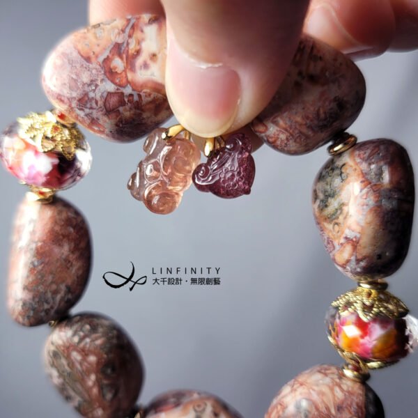 材質:天然豹紋瑪瑙(玉瓍)、碧璽、琉璃、18K金、925銀