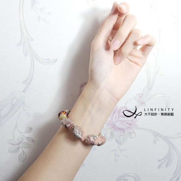 1.圖上豹紋隨型石長約22-24mm、寬約12.8-18.8mm,整體手圍約16cm。