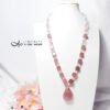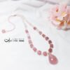 1.圖上粉晶水滴墜最高約36.4mm、寬25mm、厚12.5mm,項鍊總長度約50cm。