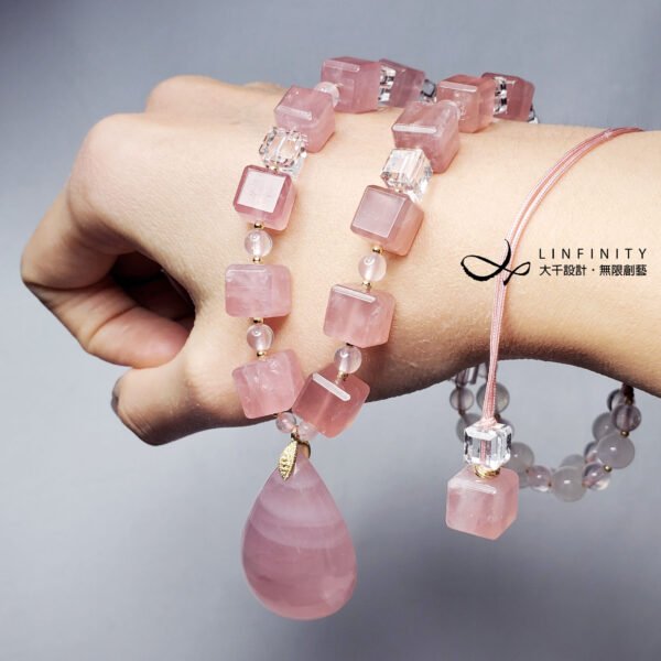 材質:天然粉晶、白水晶、藍暈月光石、18K金、925銀