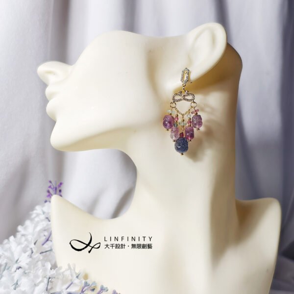設計師嚴選碧璽家族中稀有之藍西瓜(藍紅共生)碧璽、龍葵紫(紫灰色)碧璽設計,展現碧璽色彩層次中最迷人且難得的篇章。