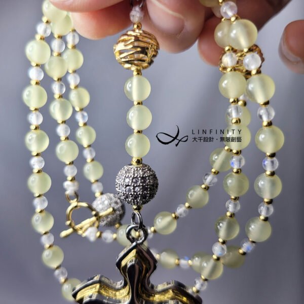 本件嚴選金葡萄石,相佐靈性第三隻眼-藍月光石設計。