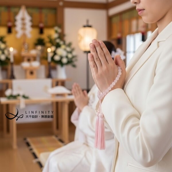粉晶為愛情之石,故粉晶念珠是日本人參加日式婚禮最常攜帶的念珠款式。