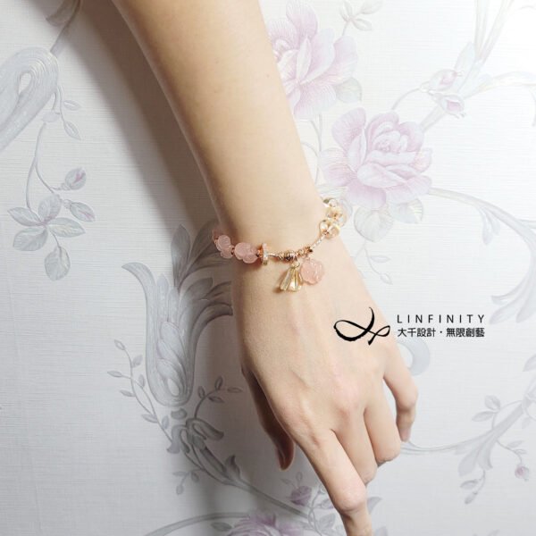 1.圖上粉晶花約12.3mm,玫瑰金管長約30mm,整體手圍約16cm。