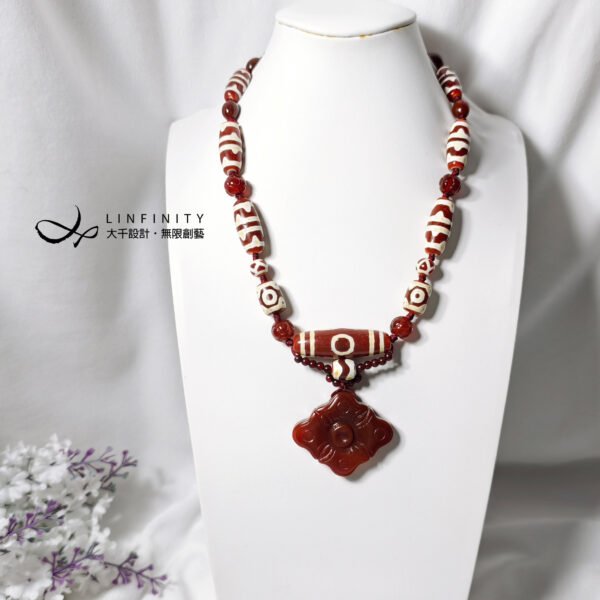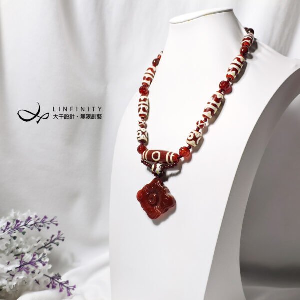 設計師持恭敬心,創作本件紅瑪瑙天珠作品: